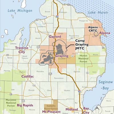Camp Grayling Michigan Map – The land and air space between Alpena and Grayling is some of the best for this training, noted Colonel Todd Fitzpatrick of the Army National Guard. . MVAA team members had the opportunity to visit Camp Grayling Joint Maneuver Training Center during reserve component readiness exercises. The Michigan National Guard beganโฆ .